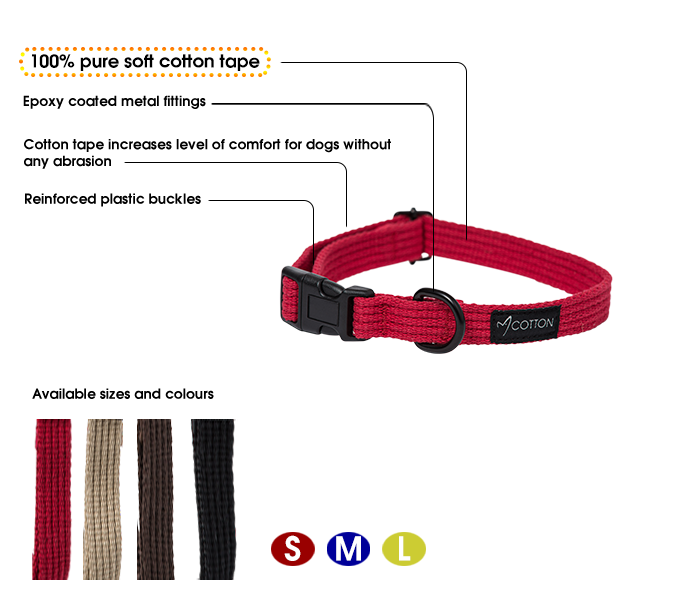 Made from 100% pure soft cotton tape, this collar is gentle on your dog’s neck and ideal for dogs with sensitive skin or short fur.